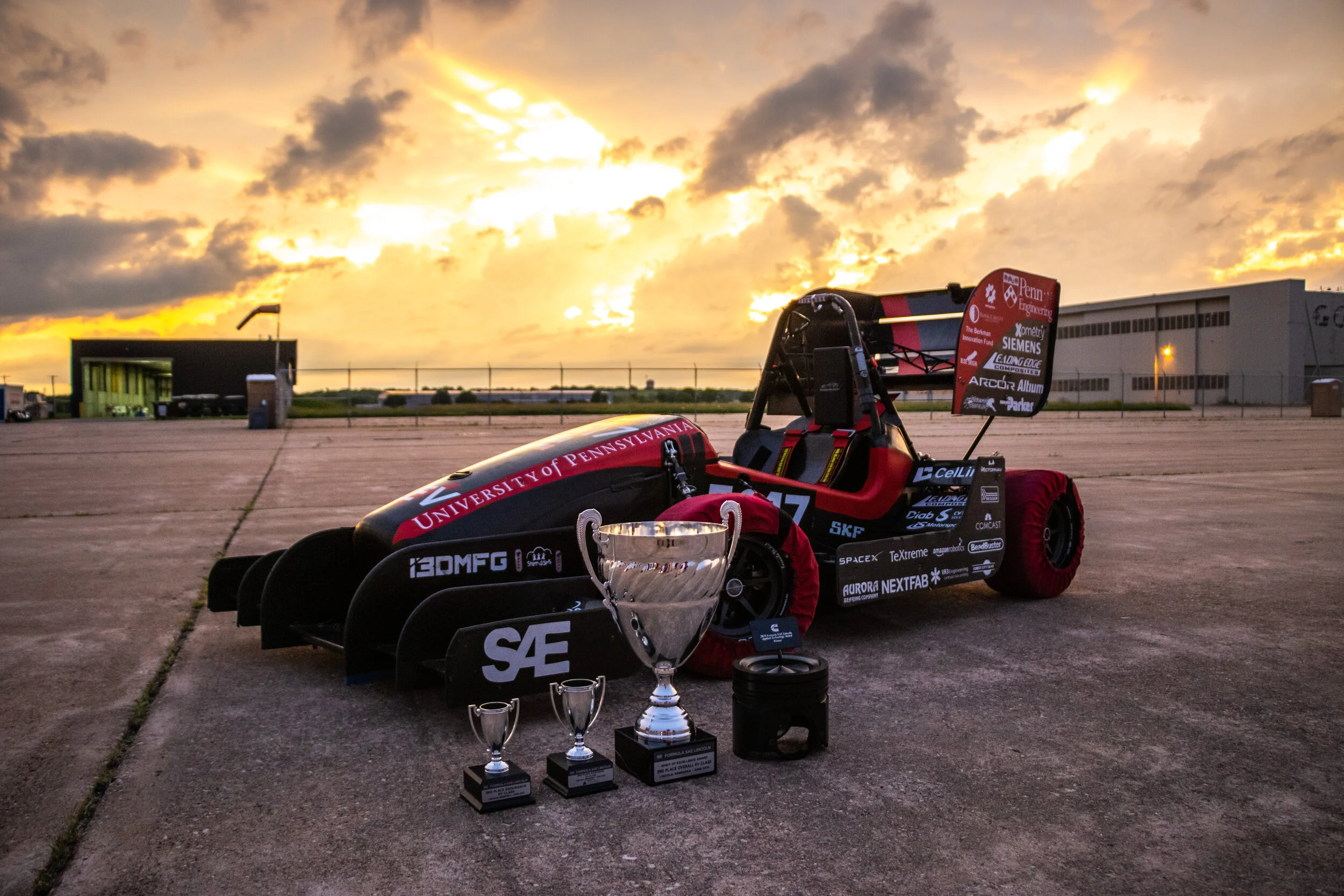 Swan Necks are the backbone of the rear wing mounting system. They are designed to carry the aerodynamic loads of the rear wing, which produces upwards of 360 lbs of downforce at a top speed of 90 mph. I worked to minimize weight, improving by over 50% from the previous design. The other elements of the mount are carbon tubes with spherical rod ends: a cross brace seen on top and vertical supports under the wing. This complicated 3D linkage presents challenges in calculating the expected loads and linkage behavior. The Swan Necks have three pin joints, with a truss structure optimized to carry the moment loads produced by the linkage.